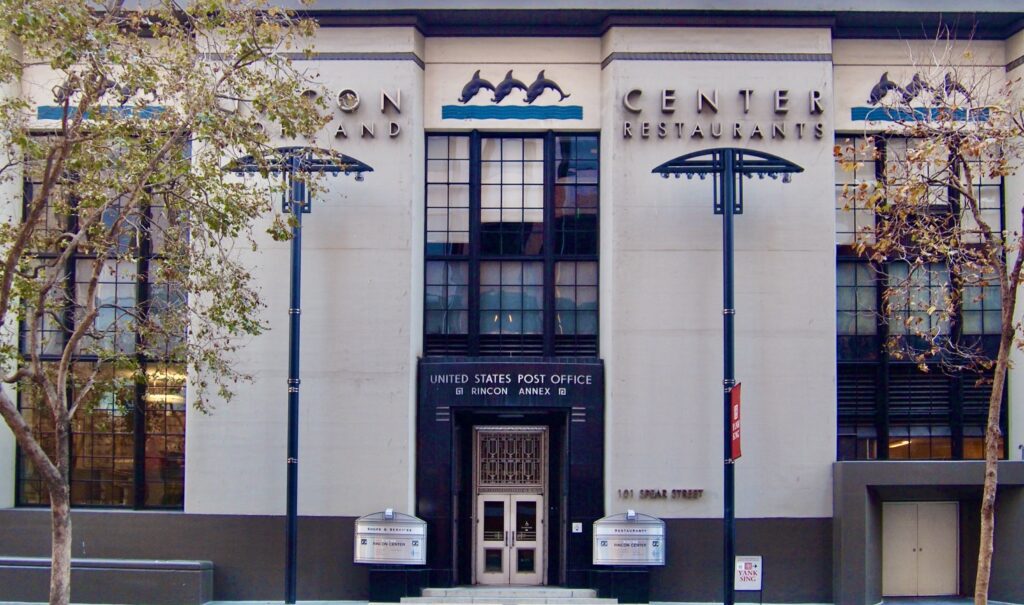 The original Rincon Annex was designed by Gilbert Stanley Underwood in a Streamline Moderne style and was completed in 1940 for the US Post Office as a mail-handling facility. The exterior is decorated with stone relief friezes of dolphins and eagles. Decorative metal grills feature over the windows and above entranceways. The interior lobbies are worth visiting. On display are items and documents related to the history of the Post Office. The walls are dominated by ‘social-realism’ artwork including murals depicting San Francisco’s role in the history of California.