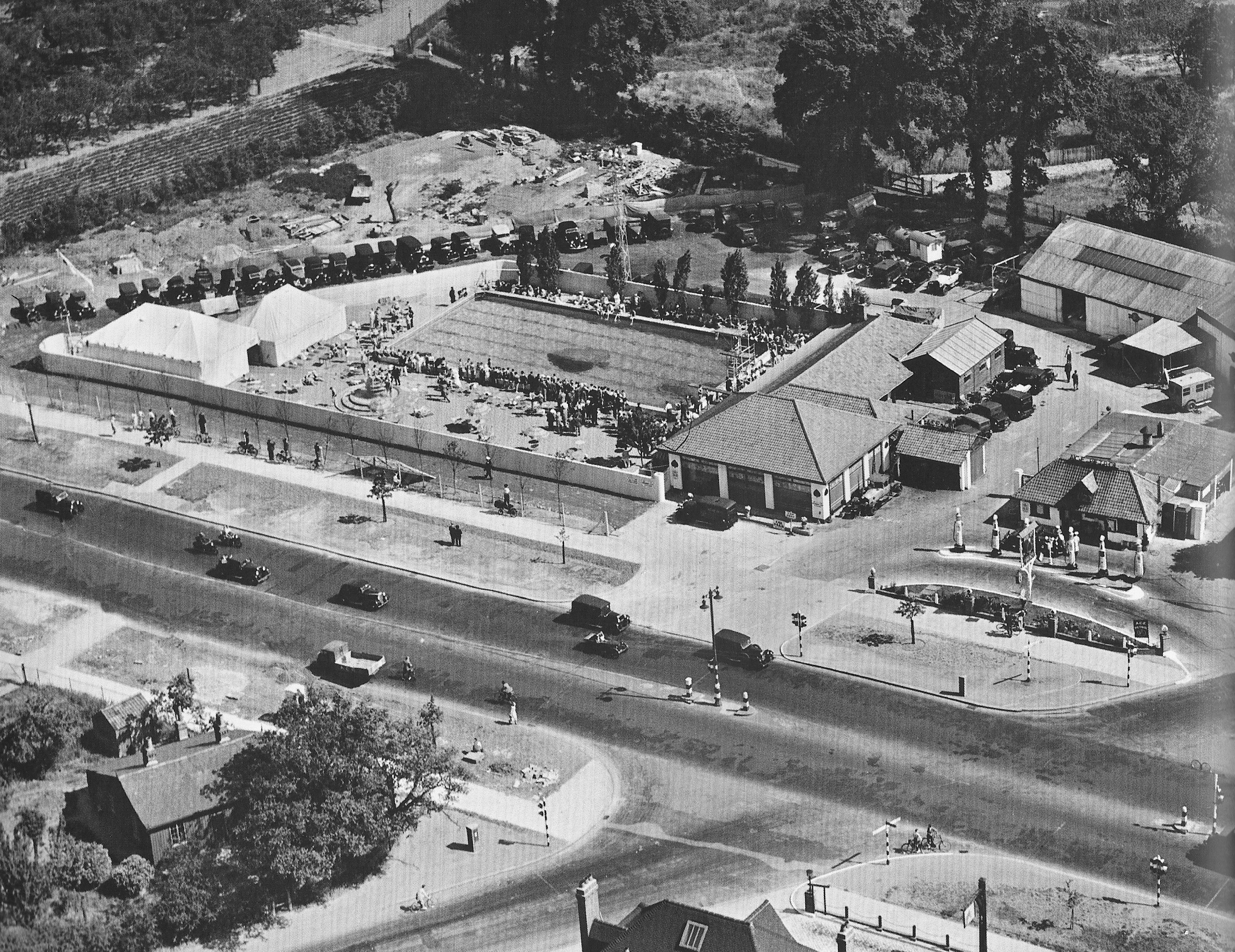 Early recognition that motoring and hospitality could form a mutually beneficial alliance came in 1921, when the Country Road Club established its first branch at Ham Manor, Newbury. Dedicated to providing a comfortable retreat for motorists, the club could boast a number of distinguished members on its board including Rudyard Kipling, the Dukes of Sutherland and Newcastle, and Lord Beaulieu. It had ambitious plans, hoping to establish a club every fifty miles along major trunk roads and in 1921 had already earmarked sites in Bath and Tewkesbury as sister clubs to Newbury. The Country Road Club’s plans for domination fizzled out, but of those new road routes and by-passes that were being built, petrol or ‘filling’ stations followed in their wake. Some of these began to offer refreshments, and eventually, entrepreneurs saw a gap in the market for a leisure innovation combining the car and the club.