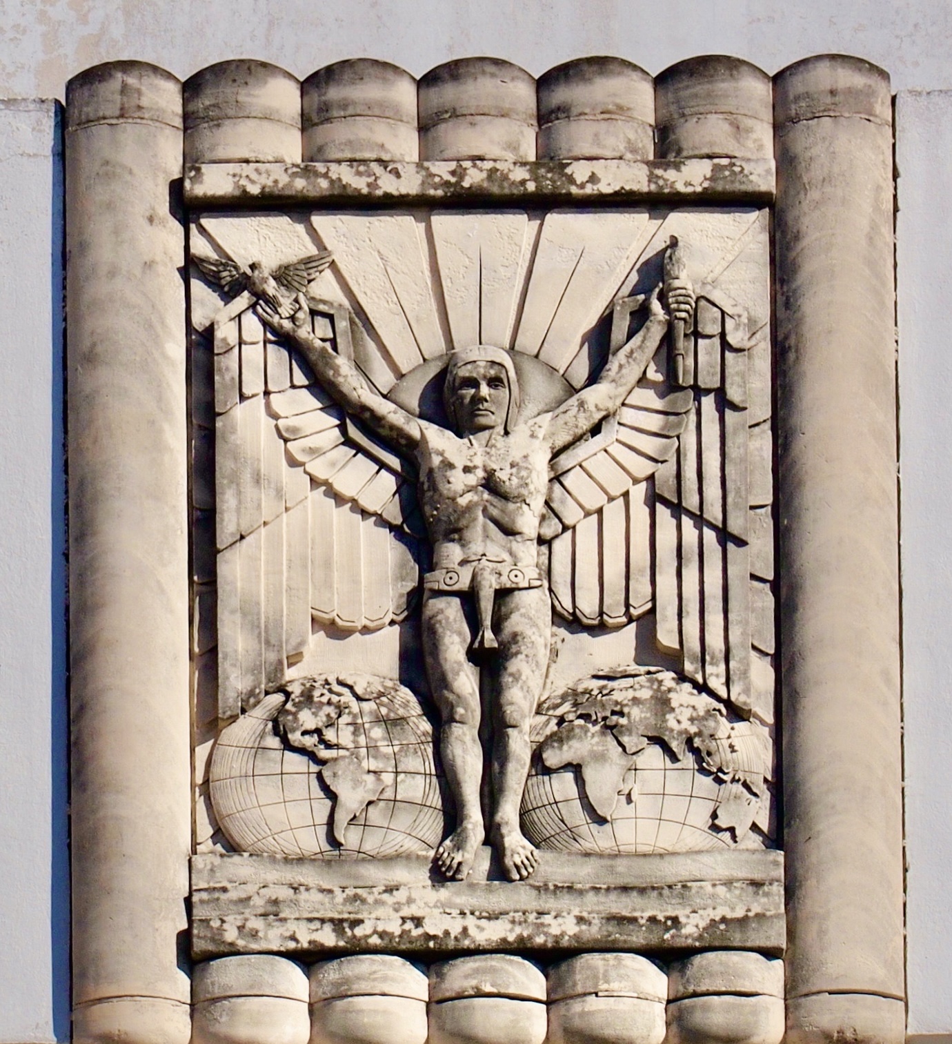 Although the internet contains somewhat limited information on Liberty and Baytown Art Deco buildings, abundant information may be easily found for the San Jacinto Monument and the 1940 Air Terminal Museum building. In particular, the Library of Congress has much better photographs of the aviation-themed reliefs. Or perhaps more correctly, of the reliefs in much better condition than when I visited!