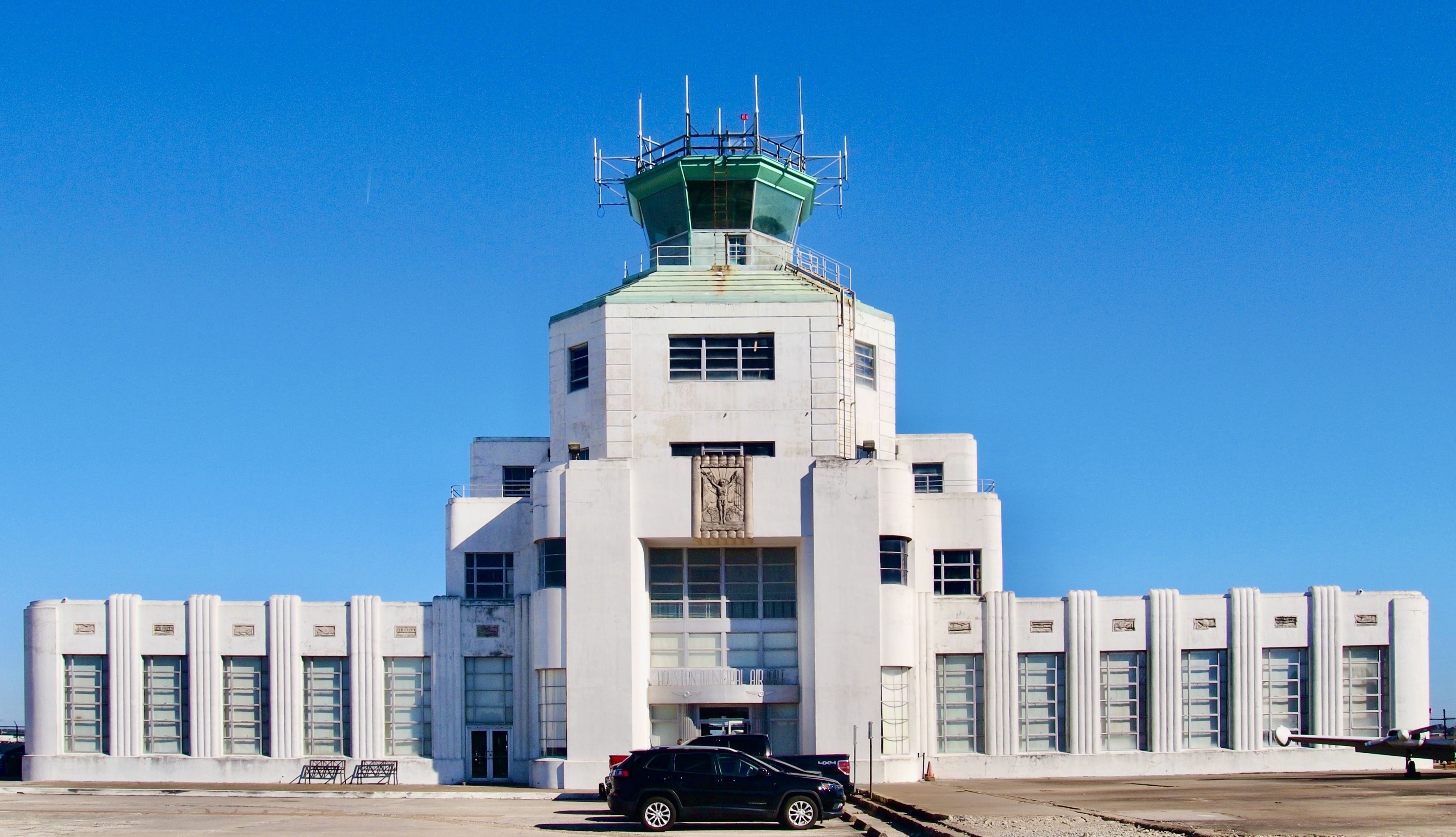 The original terminal, built in Art Deco style in 1940, served as the first purpose-built terminal for passenger flights in Houston. It was designed by architect Joseph Finger with construction funded by the Public Works Administration. The terminal building is said to be ‘among the few surviving examples of classic art deco airport architecture from the 1940s.’ After closing in the 1960s, it remained unused and somewhat derelict for many years. Now a museum, operated by the Houston Aeronautical Heritage Society, the building is well worth a visit to anyone in the Houston area.